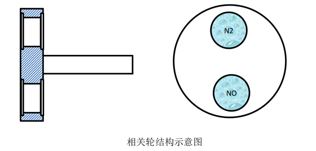 气体滤波室通常集成在滤波轮上,采用整体化设计,由步进电机驱动实现旋转调制。滤波室主体为密封腔体,内部分为两个独立的气体池,分别充入高浓度NO气体和高纯氮气(N2),两个气体池均匀分布在滤波轮上,交替对应红外光光路,实现“参考信号”与“测量信号”的交替采集。